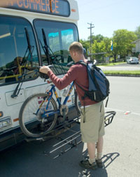 A solução, caso a Carris queira ser mais do que uma "entidade simpática" para os utilizadores de bicicleta (dobrável e não só), implicará criar regras claras e menos sujeitas às vicissitudes do dia-a-dia. E isso dá trabalho, ao contrário de abrir excepções quando os autocarros estão vazios, que é fácil. Já fizemos referência no Bicicleta na Cidade a uma solução que a Carris poderá adoptar, que facilita o transporte de bicicletas a qualquer hora - a instalação de suportes exteriores, como estes das imagens abaixo.